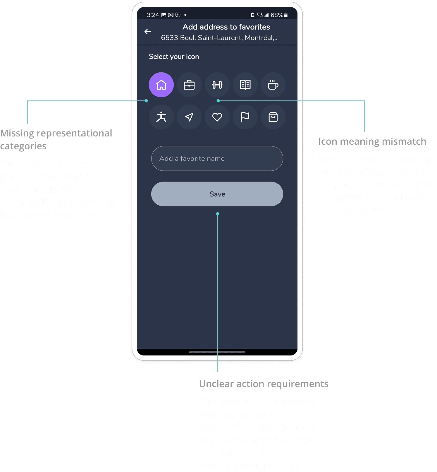 Missing and ambiguous category icons limited users’ ability to accurately represent real locations